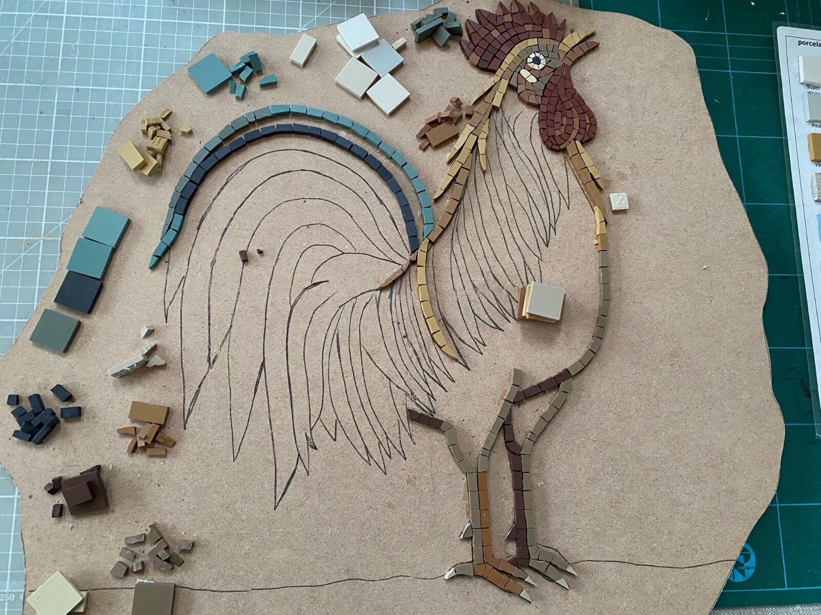 Mosaic commission in progress – Roman Cockerel Mosaic